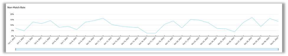 The non-match rate visualization shows a line graph with a data point for each day between the Begin and End Date.