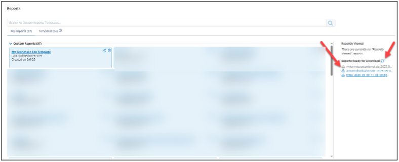 Once the export has been generated, it will show up on the Reports home screen as a blue hyperlink.