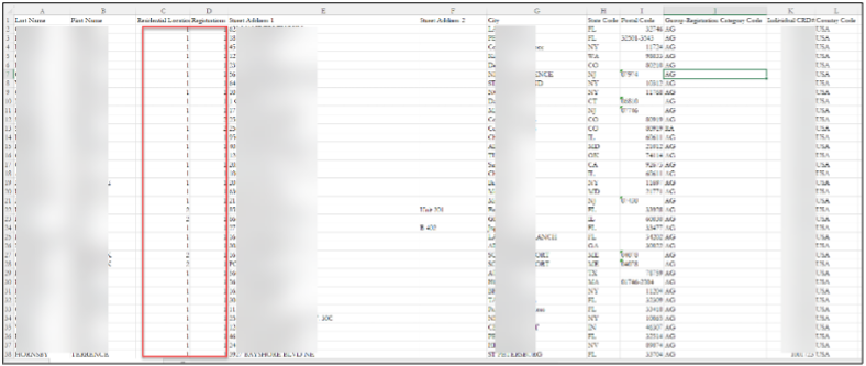 Now select all the data in the Residential Locations and Registration columns and delete it.