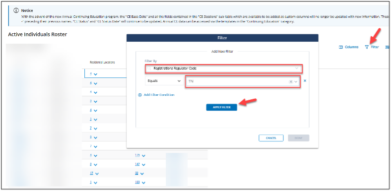 Then select TN from the dropdown select box and click on the Apply Filter button.
