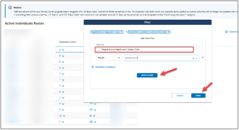 Then select APPROVED from the dropdown select box and click on the Apply Filter button.