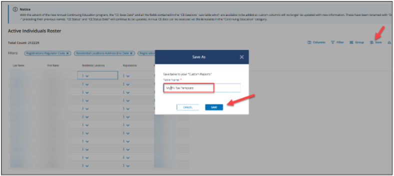 Once you have opened the Active Individuals Roster you can start customizing it, so it provides you with the information you need.