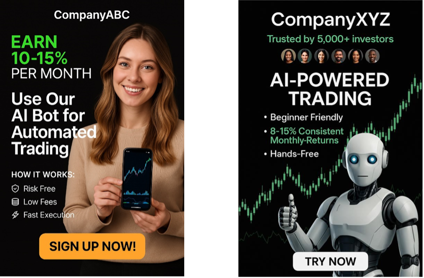 Ads for unregistered auto-trading services can be enticing, often referencing consistent returns and advantages such as increased convenience and capabilities like the use of AI to inform trades.