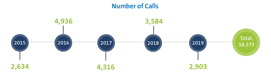 As of December 31, 2019, the Helpline had received over 18,000 calls. The average wait time for callers is under two minutes and the staff spends, on average, about 24 minutes with each caller.